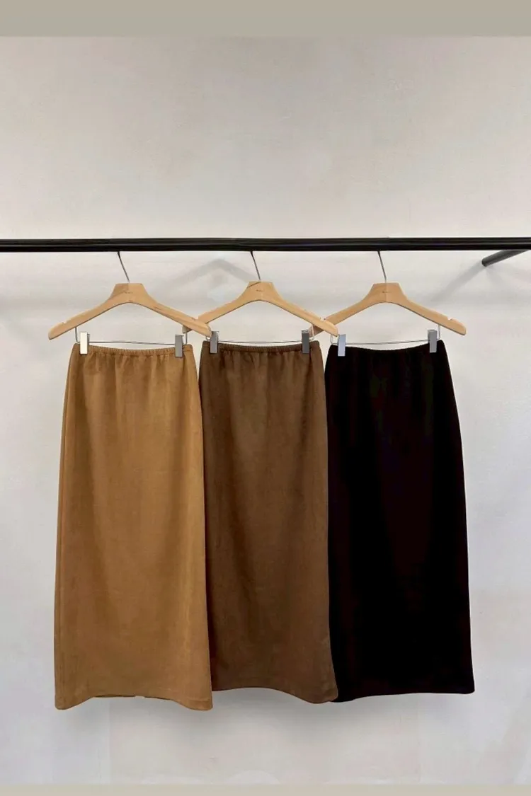 秋冬鬆緊後開叉裙(卡其,黑)