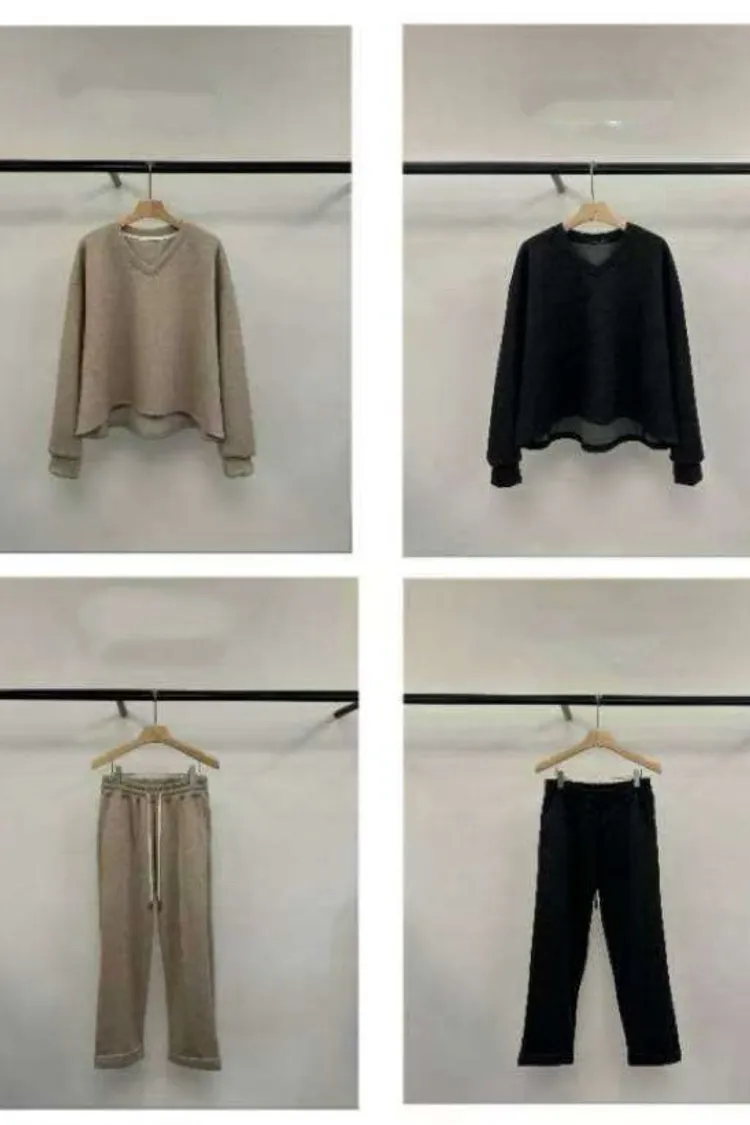 羊毛4%V領休閒抽繩長褲(杏,黑)