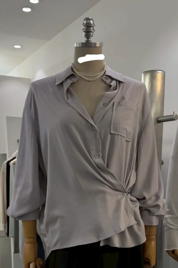 氣質縮腰釦襯衫(白,藍,紫)