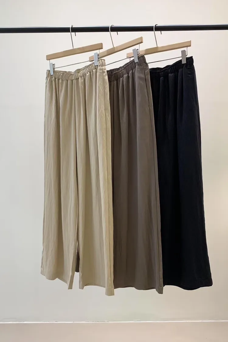 天絲63%人造絲37%舒服鬆緊長褲(杏,咖,黑)
