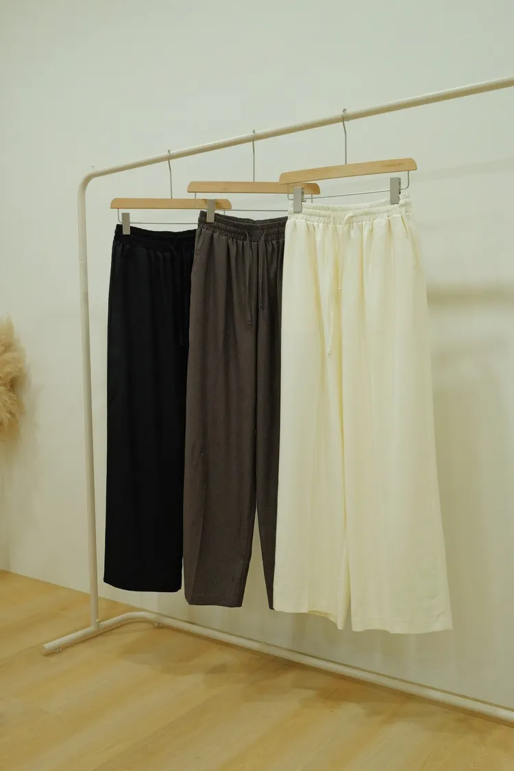 人造絲30%舒服鬆緊長褲(白,咖,黑)