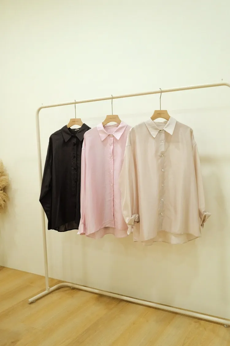 光澤翻領襯衫(粉,灰,杏,黑)