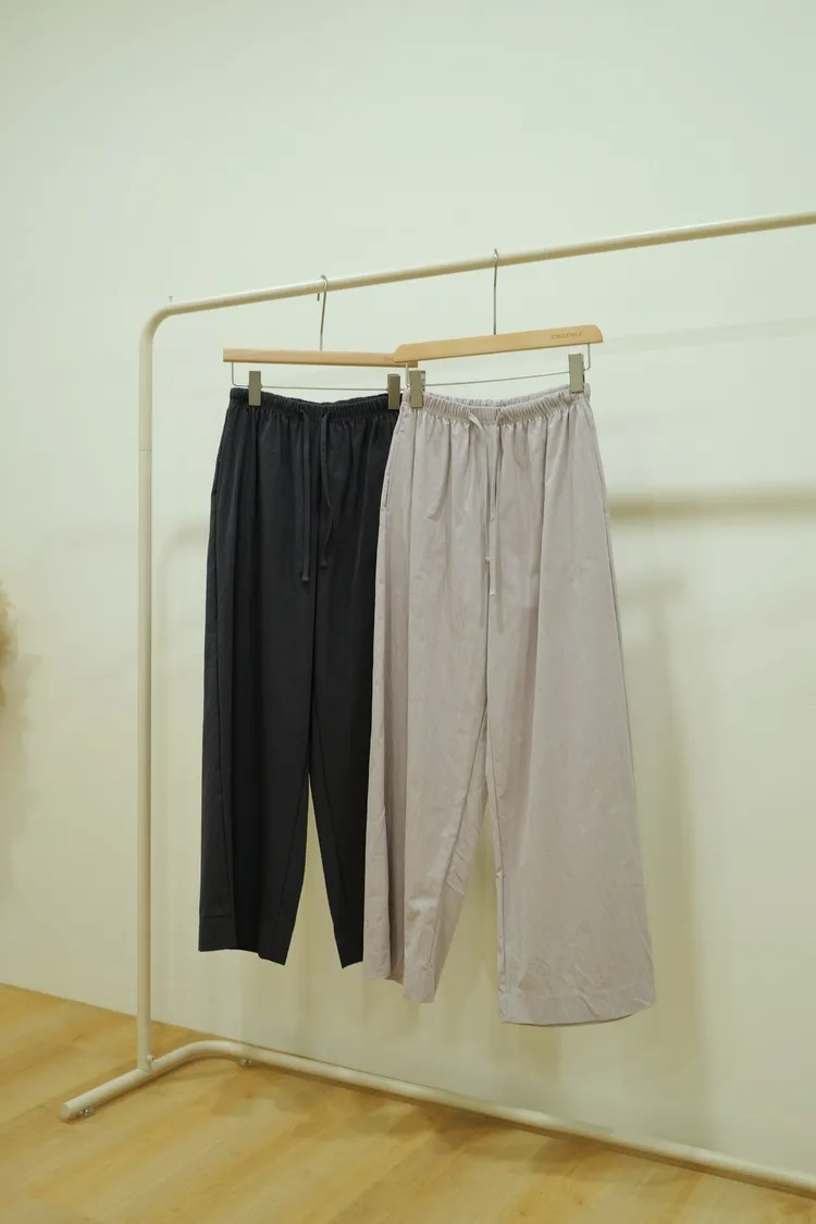 鬆緊綁帶紋路長褲(紫,灰)