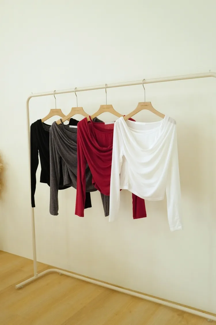 羊毛100%氣質兩件式抓皺上衣(白,灰,紅,黑)