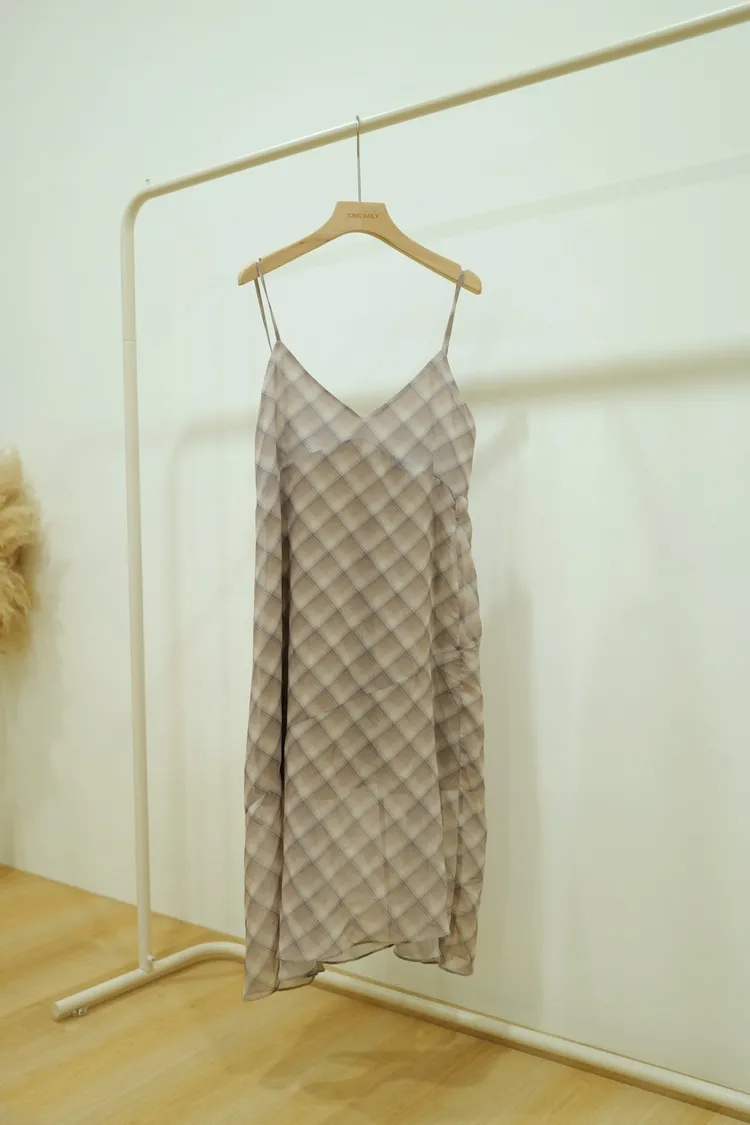 細肩格紋洋裝