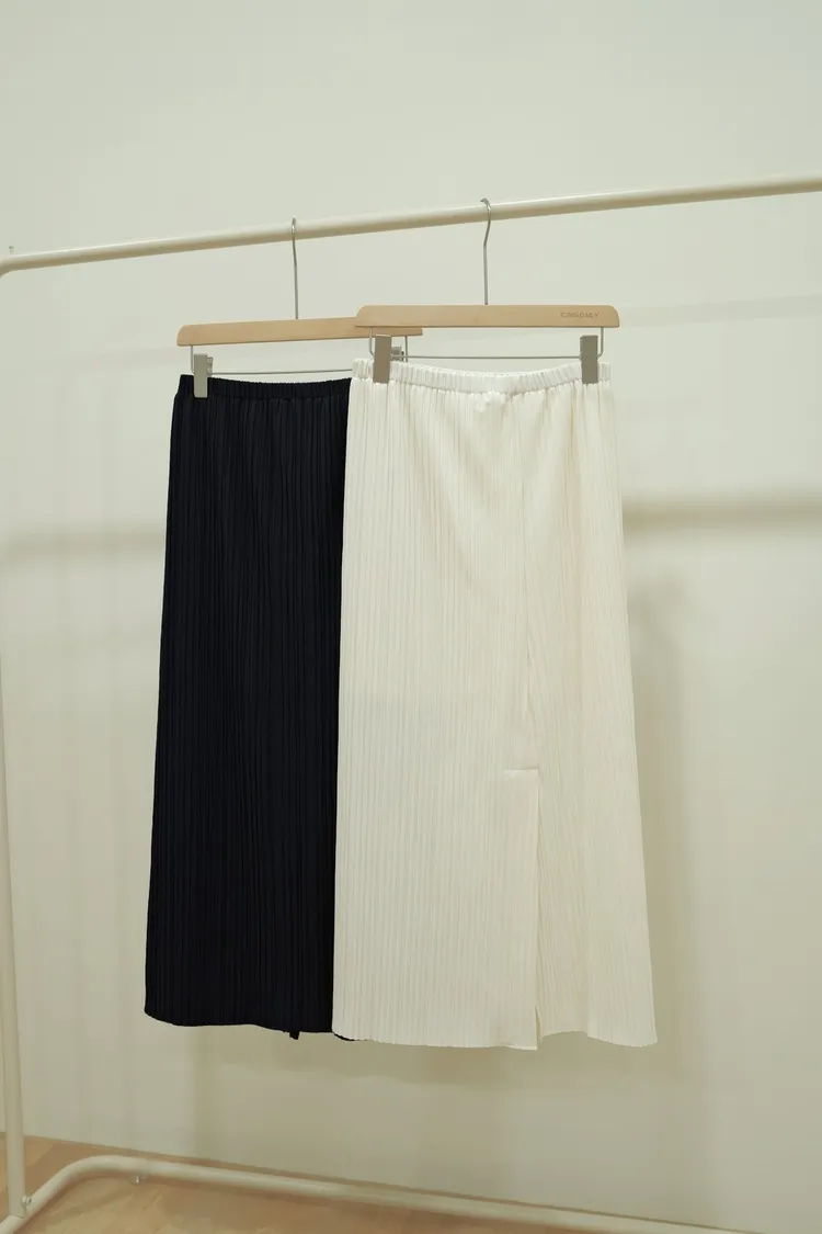 鬆緊坑條裙(白,藍)