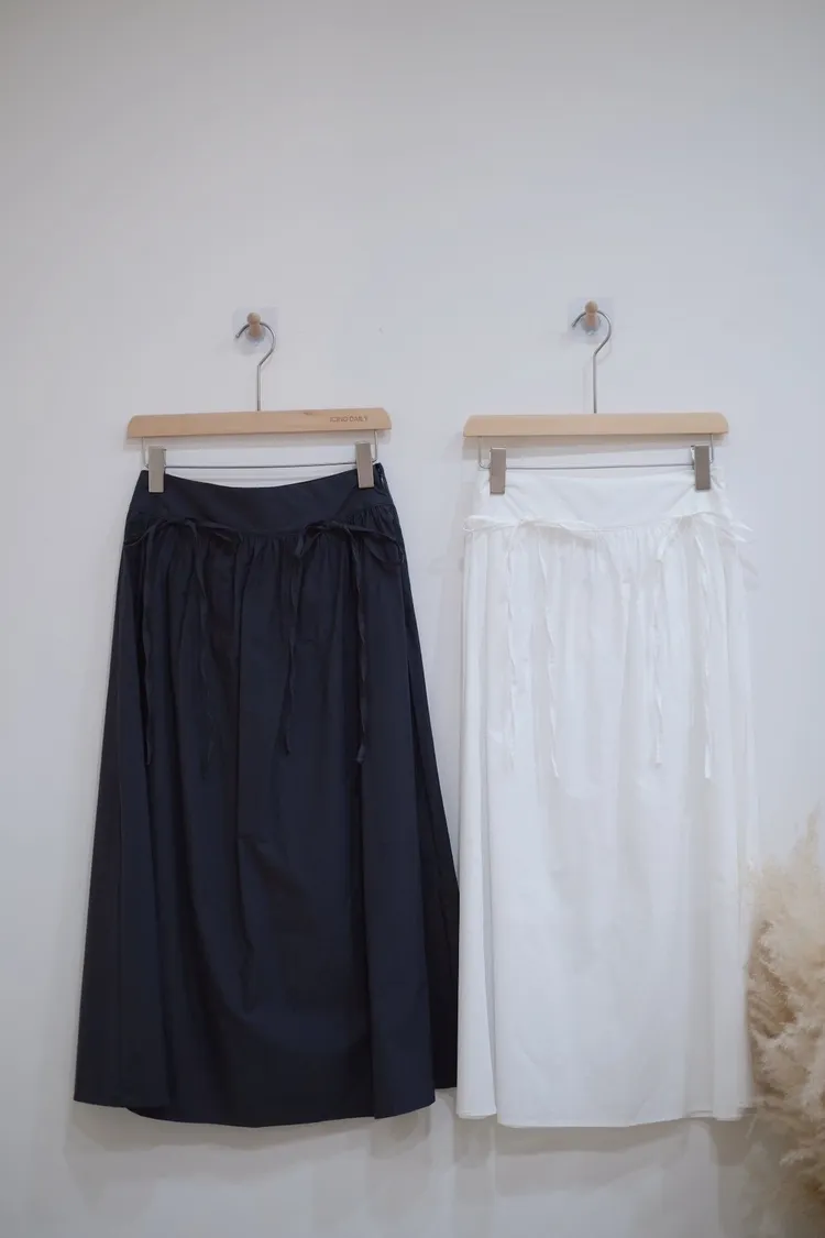 綁帶漂亮打摺裙(白,黑)(S,M)