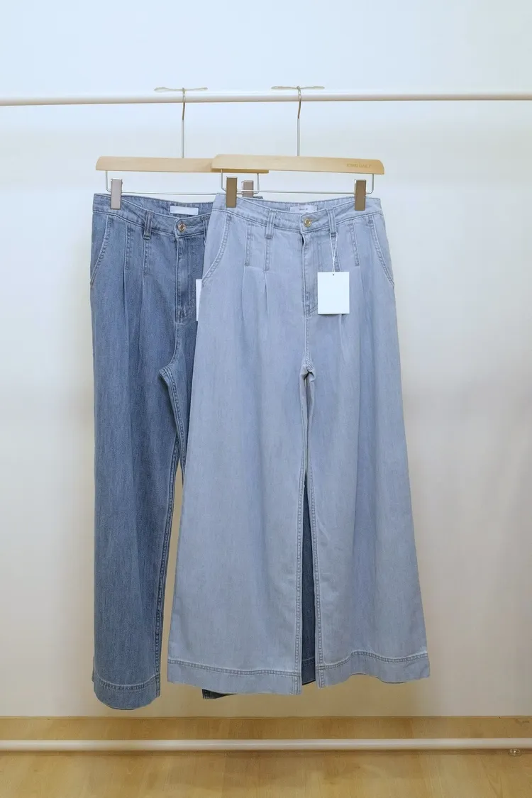 柔軟打摺寬版牛仔褲(深,淺)(S,M,L)