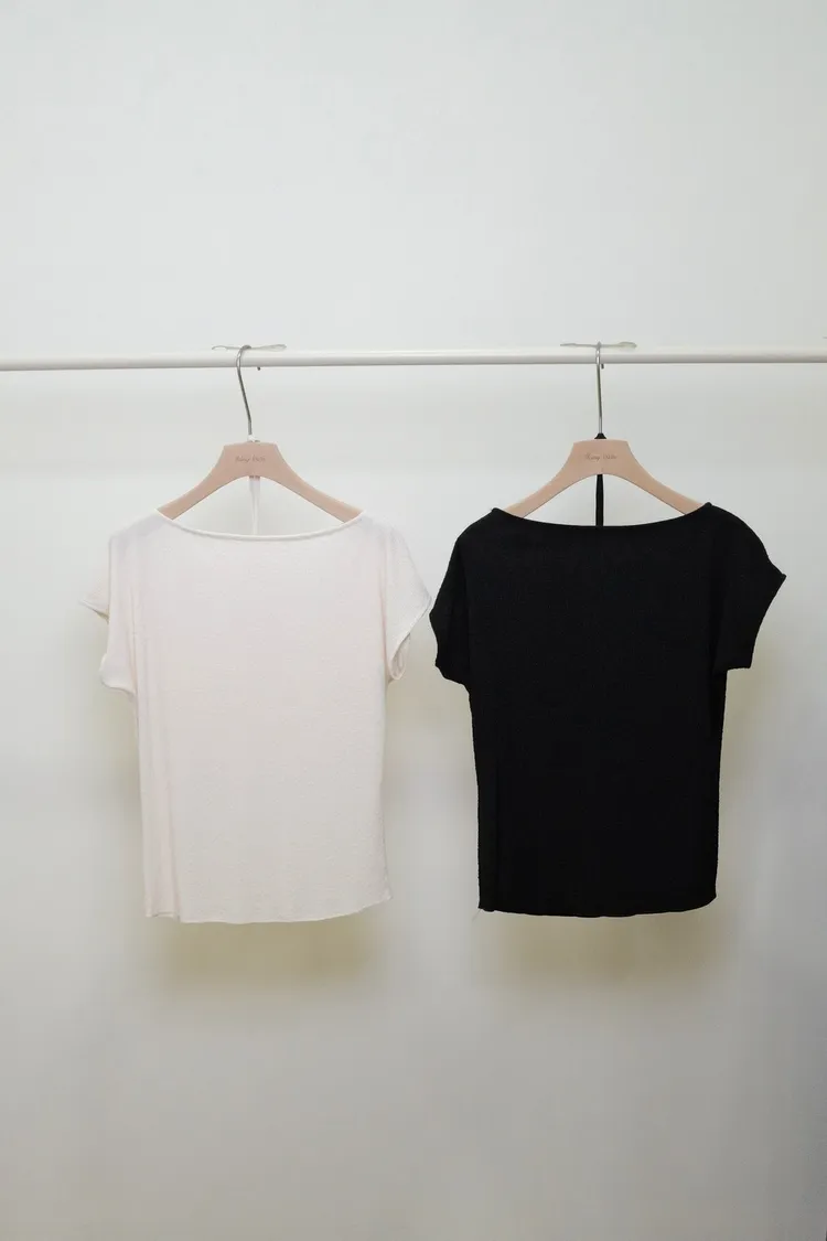 紋路綁帶上衣(白,黑)