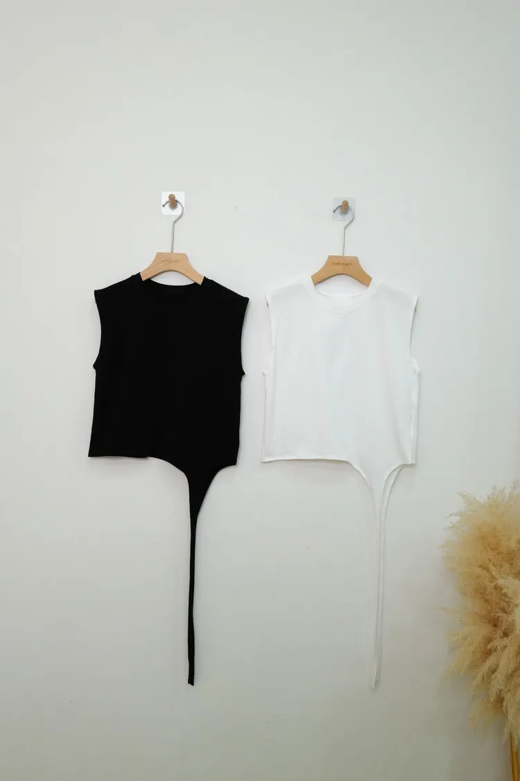 率性寬肩背心(白,黑)
