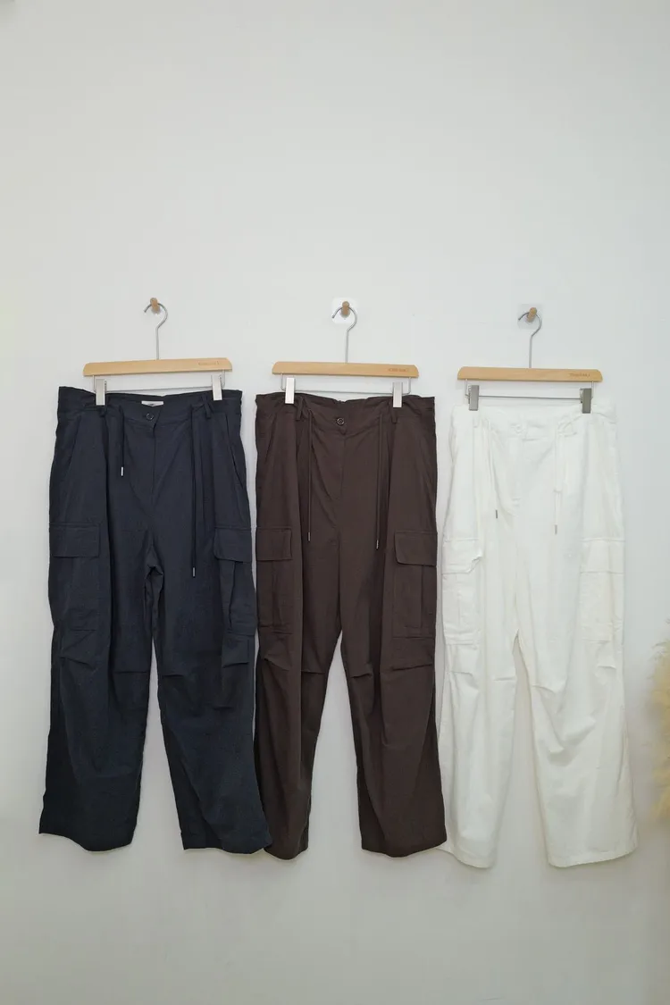 限量各一件綁帶鬆緊工裝褲(白,咖,黑)
