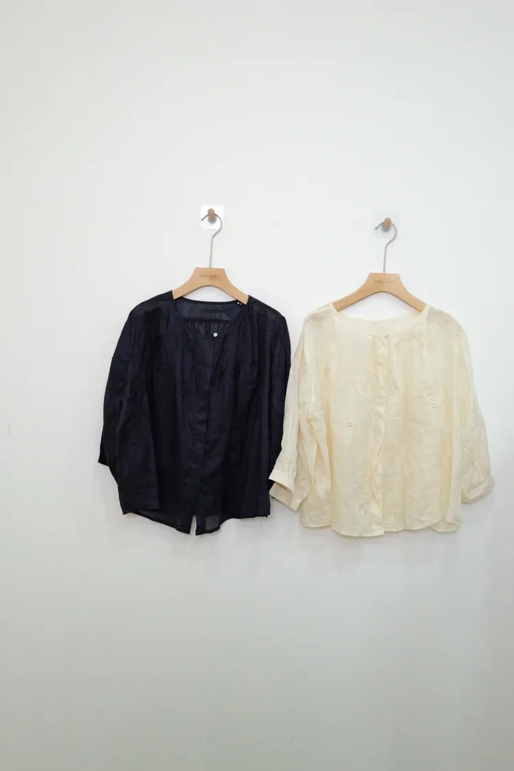 刺繡花朵透膚上衣(白,藍)