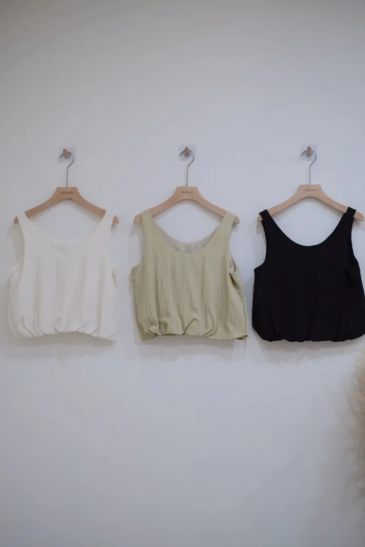 收腰寬肩背心(米,綠,黑)