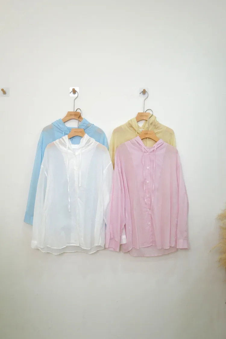 純棉透膚連帽襯衫(粉,黃,藍,白)