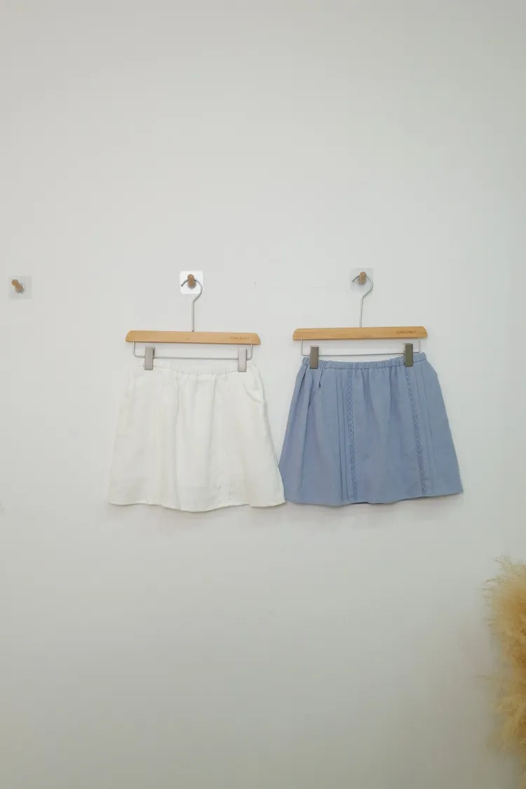 棉麻刺繡打摺短裙(白,藍)