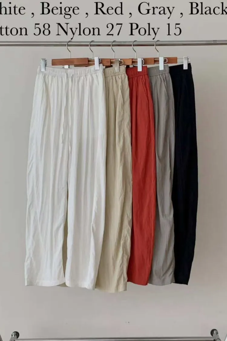 棉58%慵懶皺皺鬆緊長褲(白,杏,紅,灰,黑)(S,M)