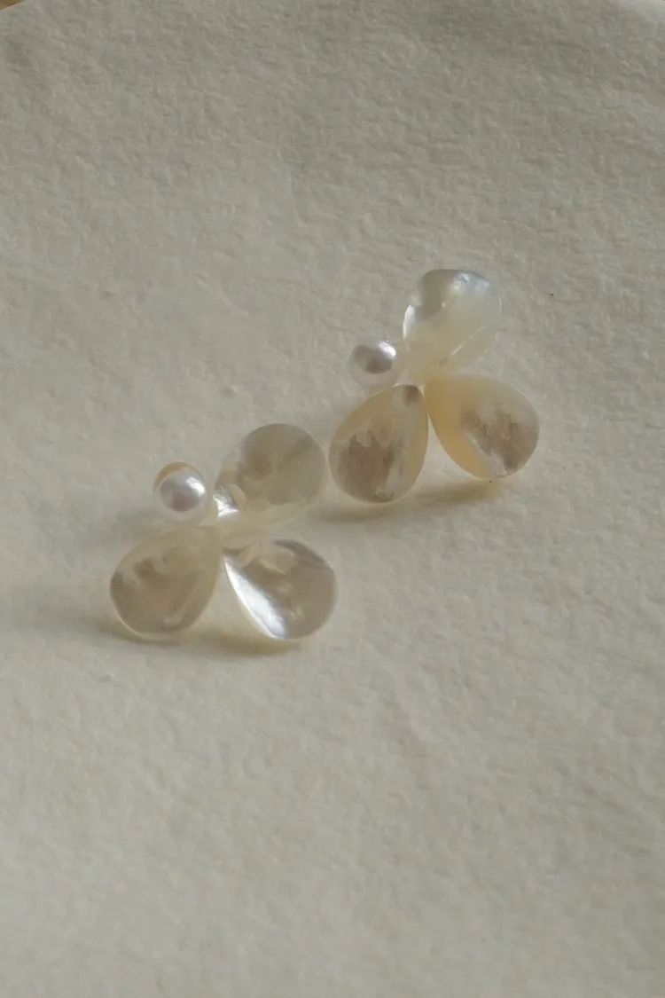 銀針貝殼花珍珠耳環