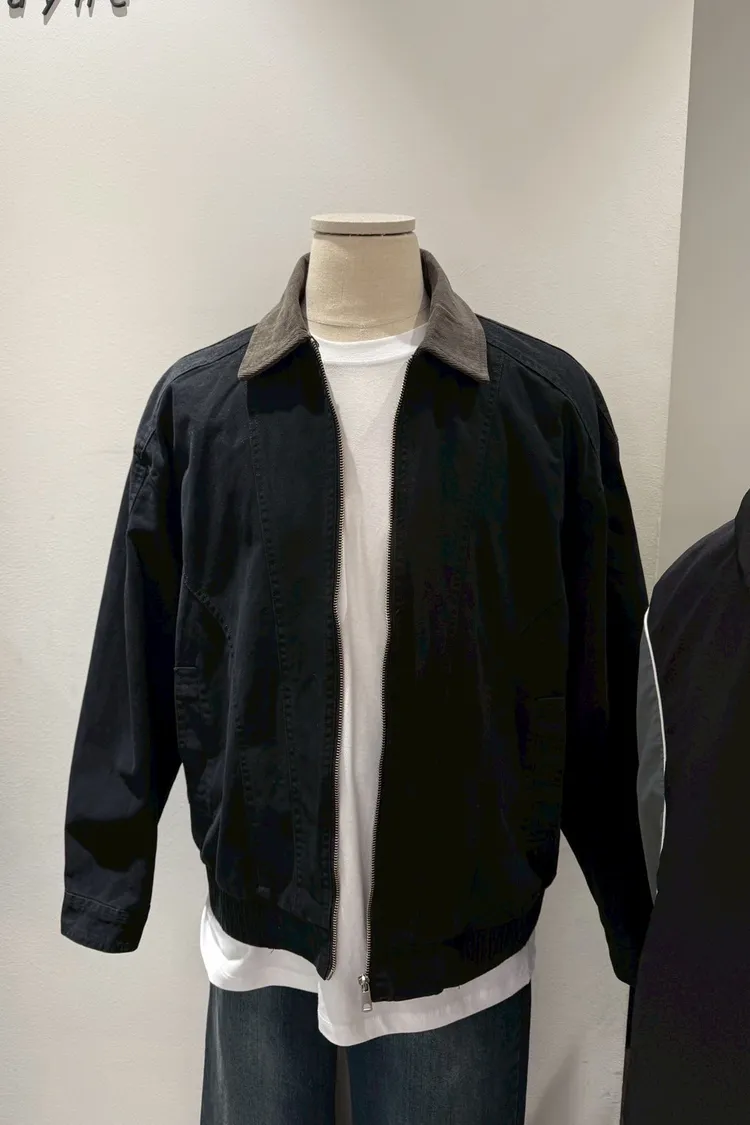 (男裝)落肩撞色翻領外套(卡其,黑)