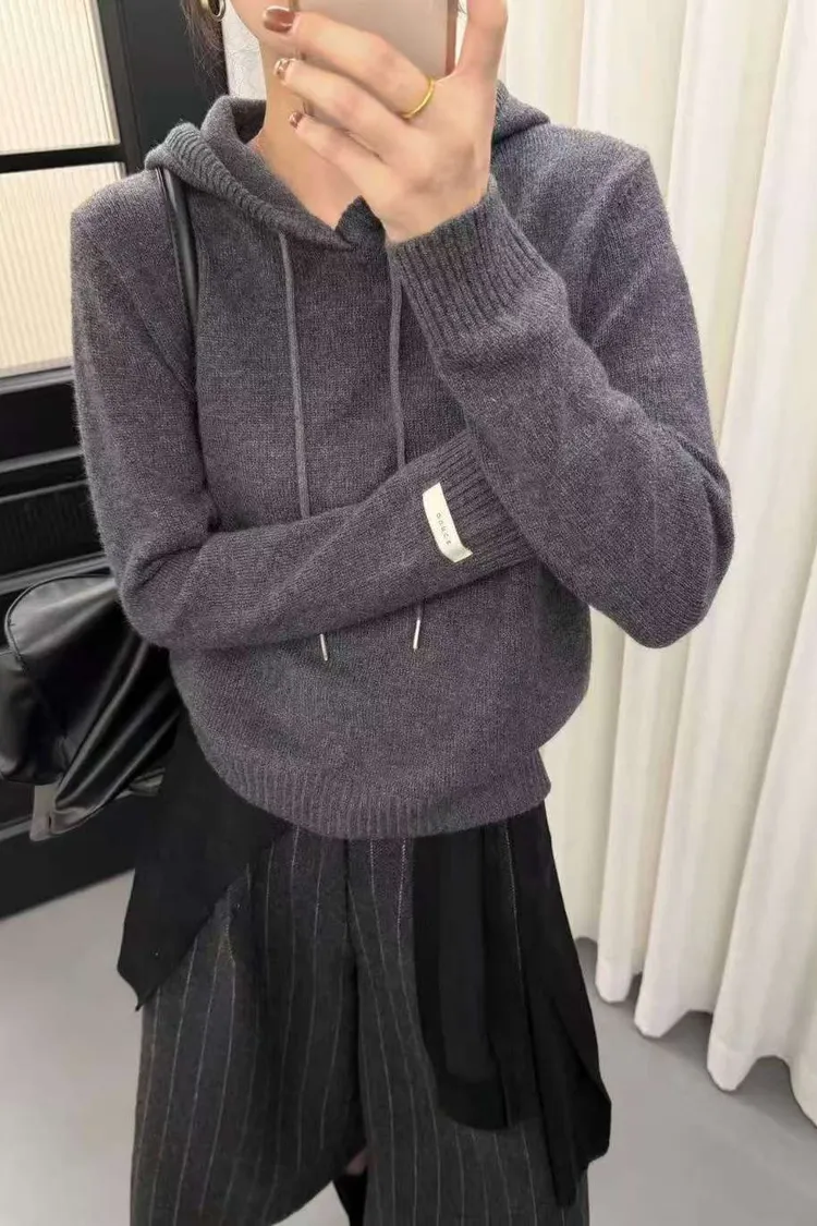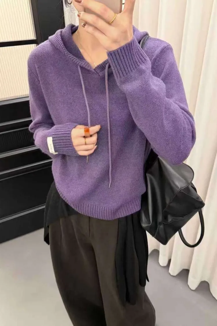 羊毛40%休閒連帽抽繩上衣(白,灰,紫)