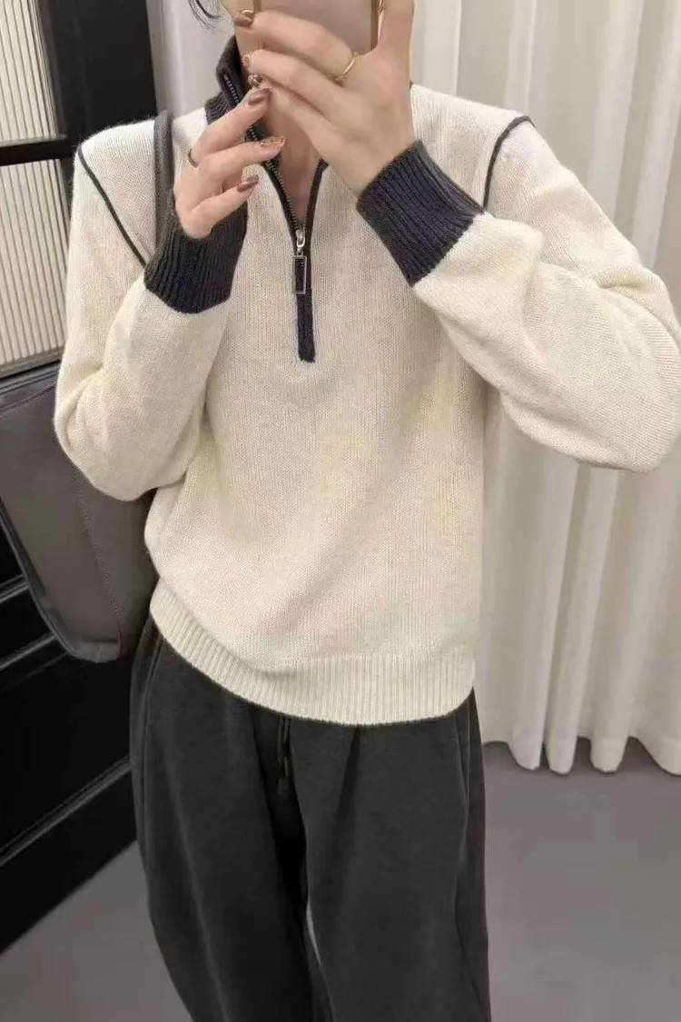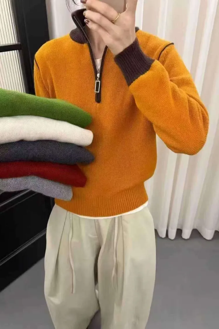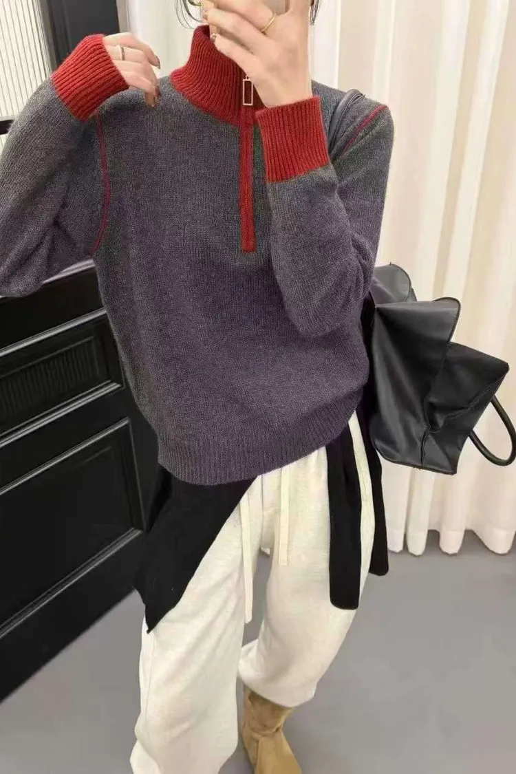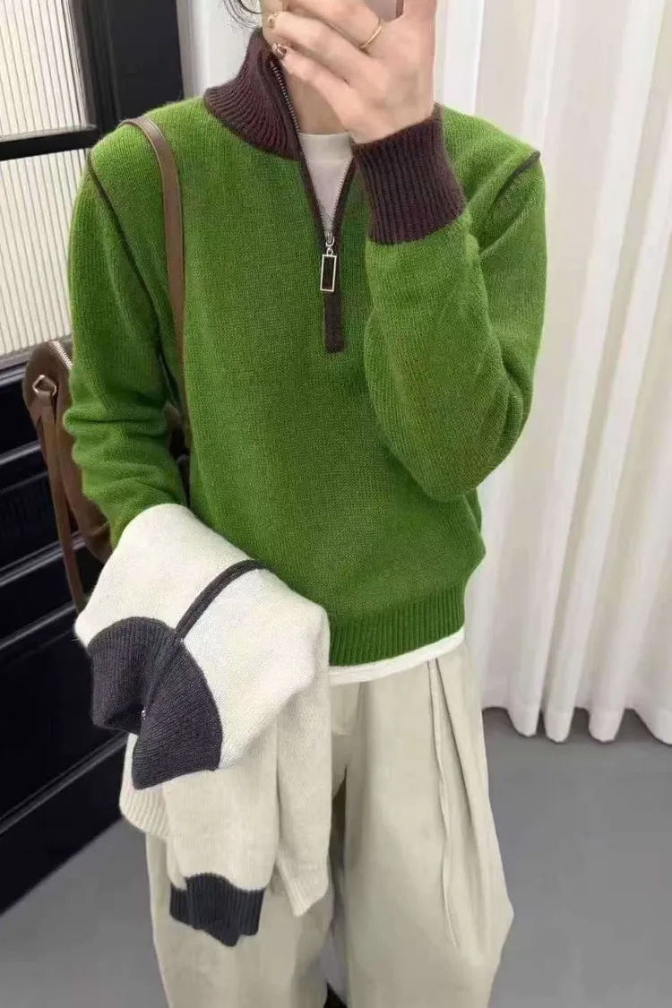 羊毛30%高領拉鍊撞色上衣(橘,綠,白,灰)