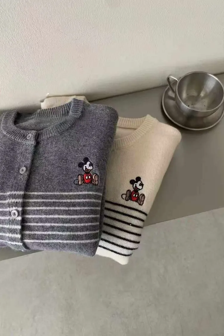 羊毛100%卡通條紋針織上衣(灰,白)