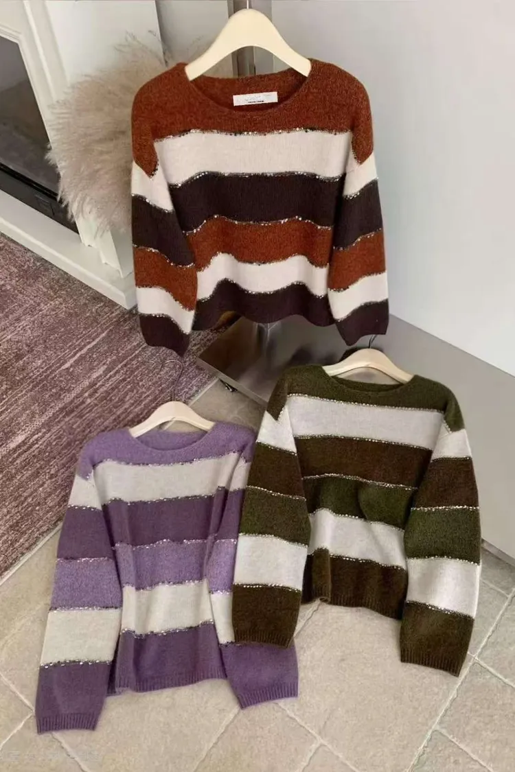 羊毛100%可看配色針織上衣(咖,紫,綠)