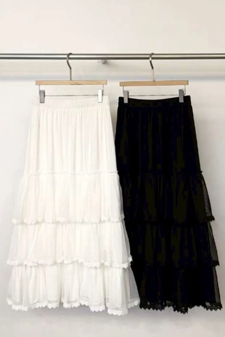 減齡蛋糕鬆緊裙(白,黑)