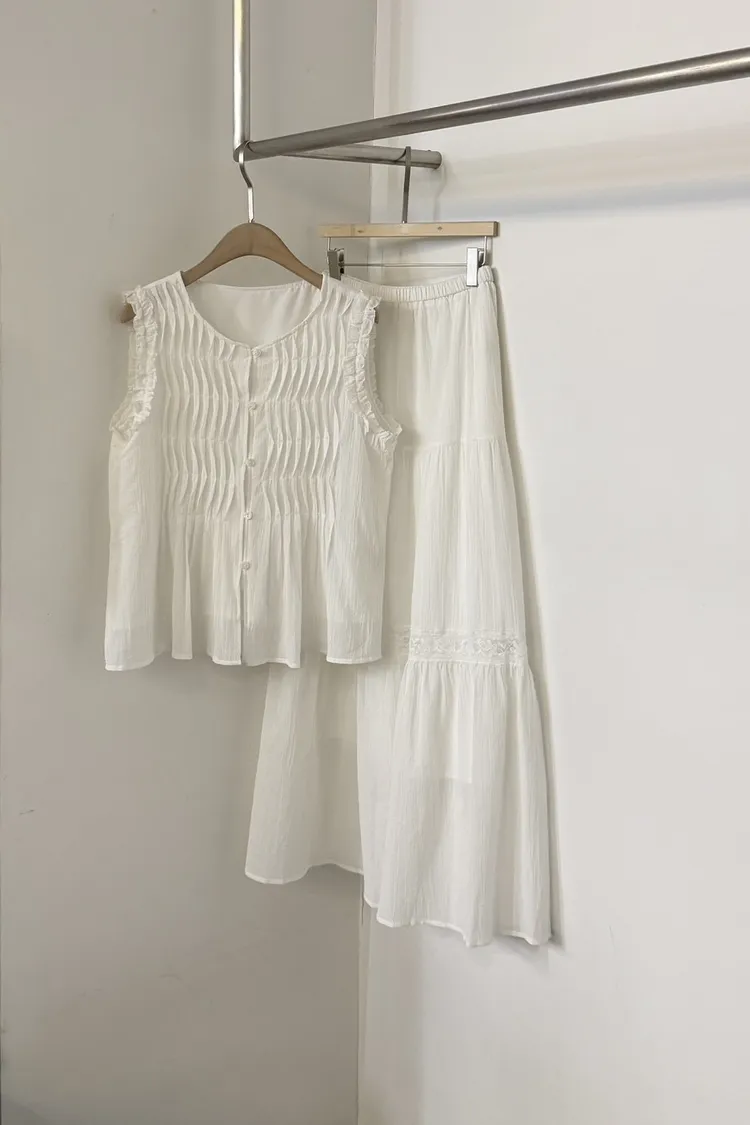 純棉100%波浪紋路背心裙子set