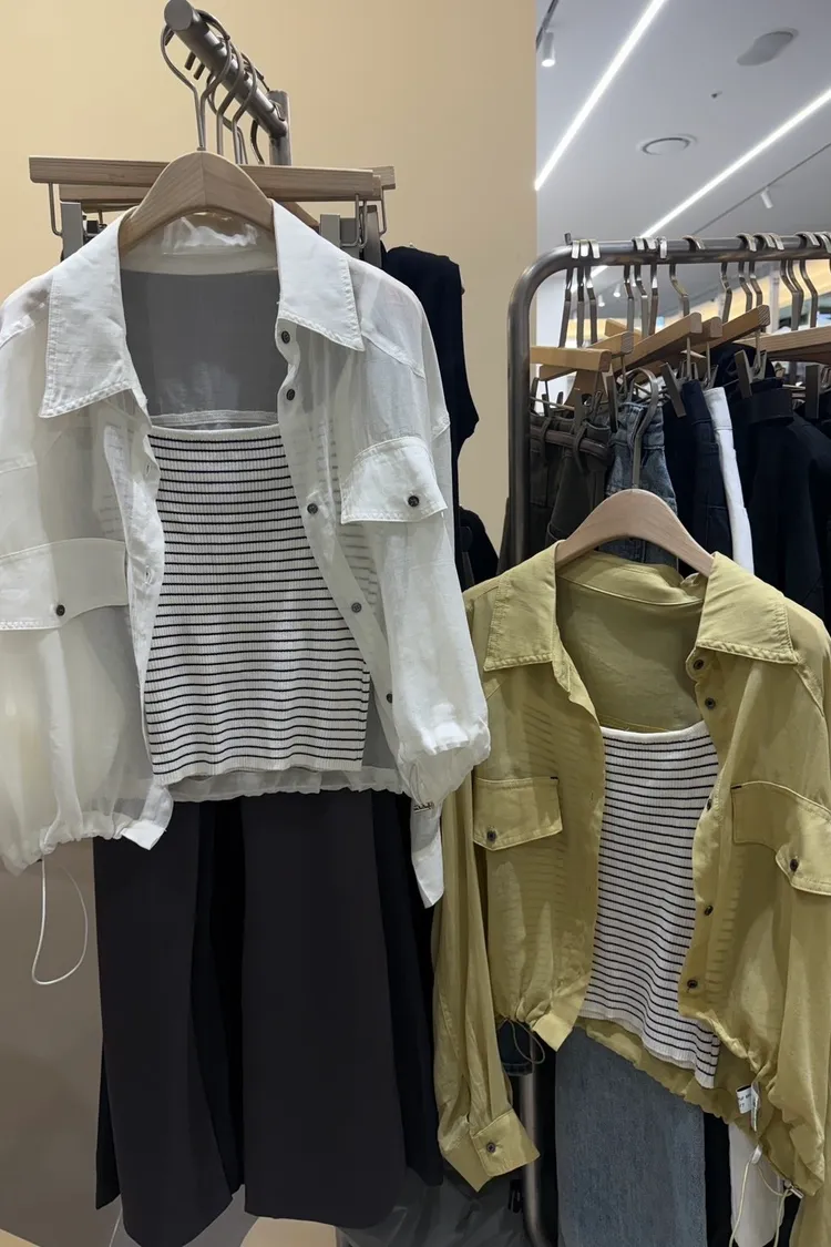 天絲100%人造絲82%條紋背心外套SET(白,黃,黑)