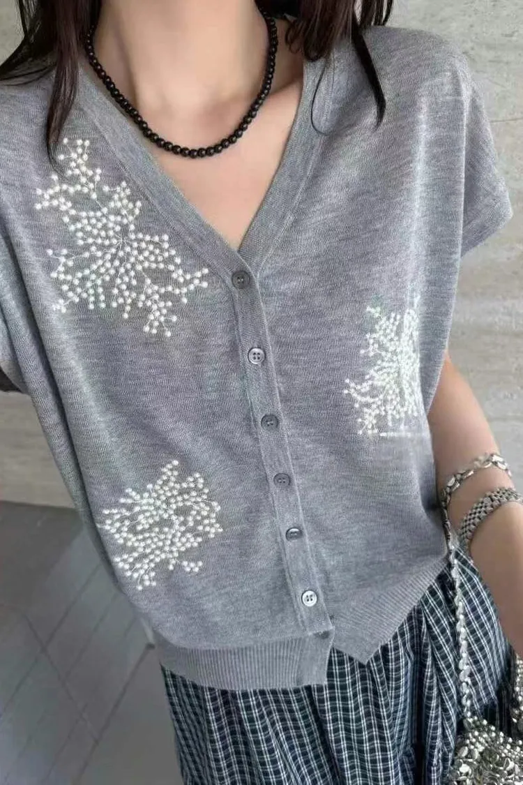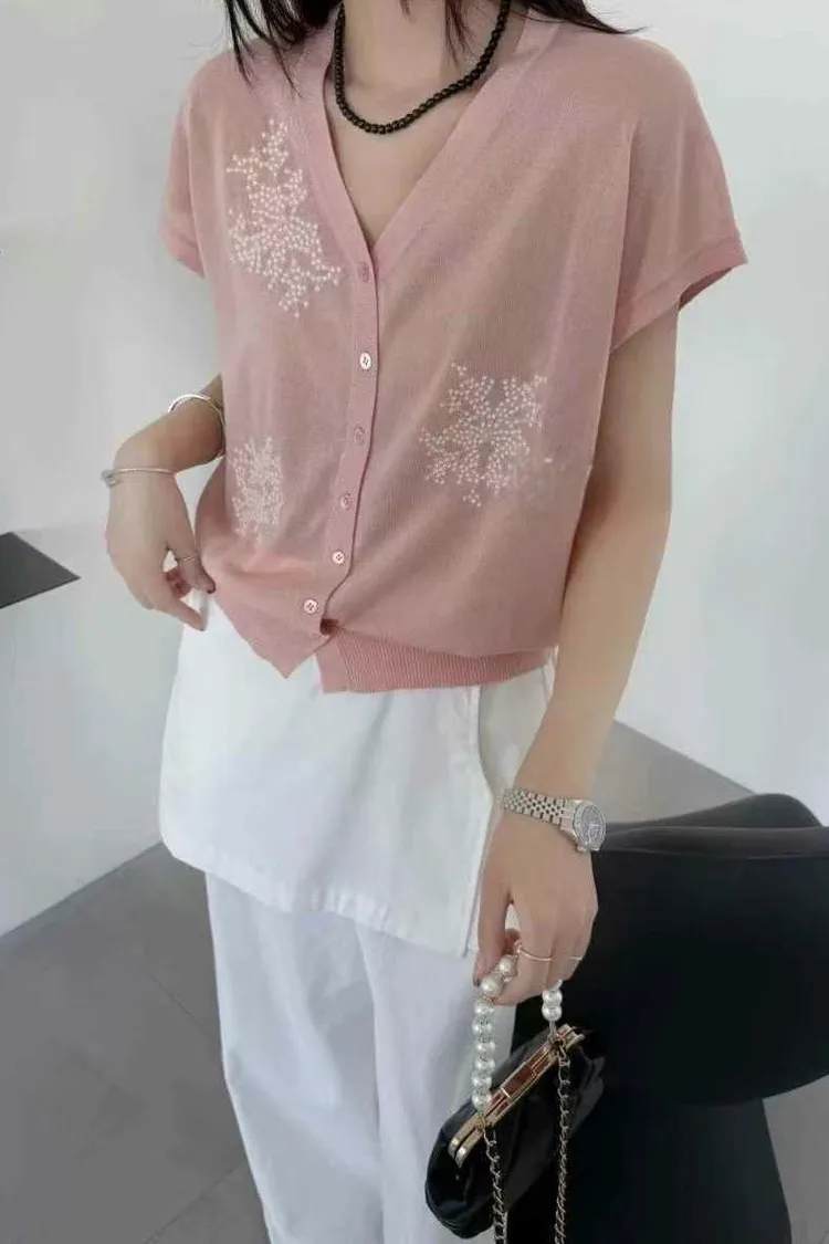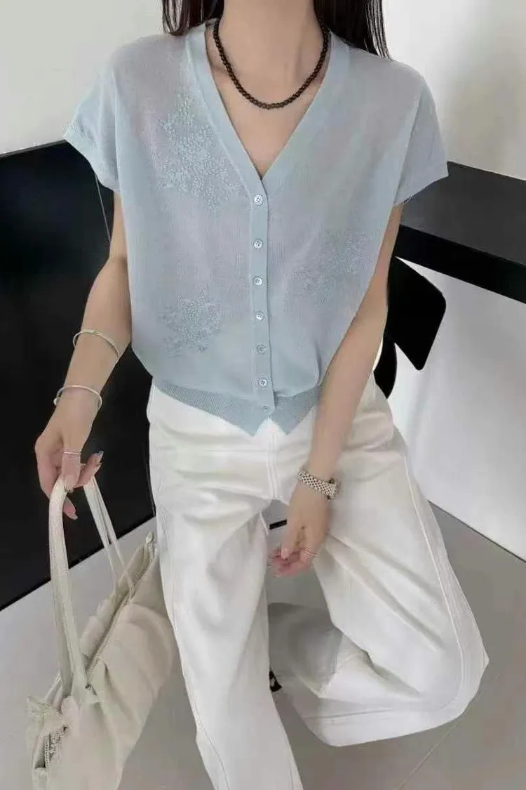 天絲人造絲刺繡雪花上衣(粉,藍,灰)