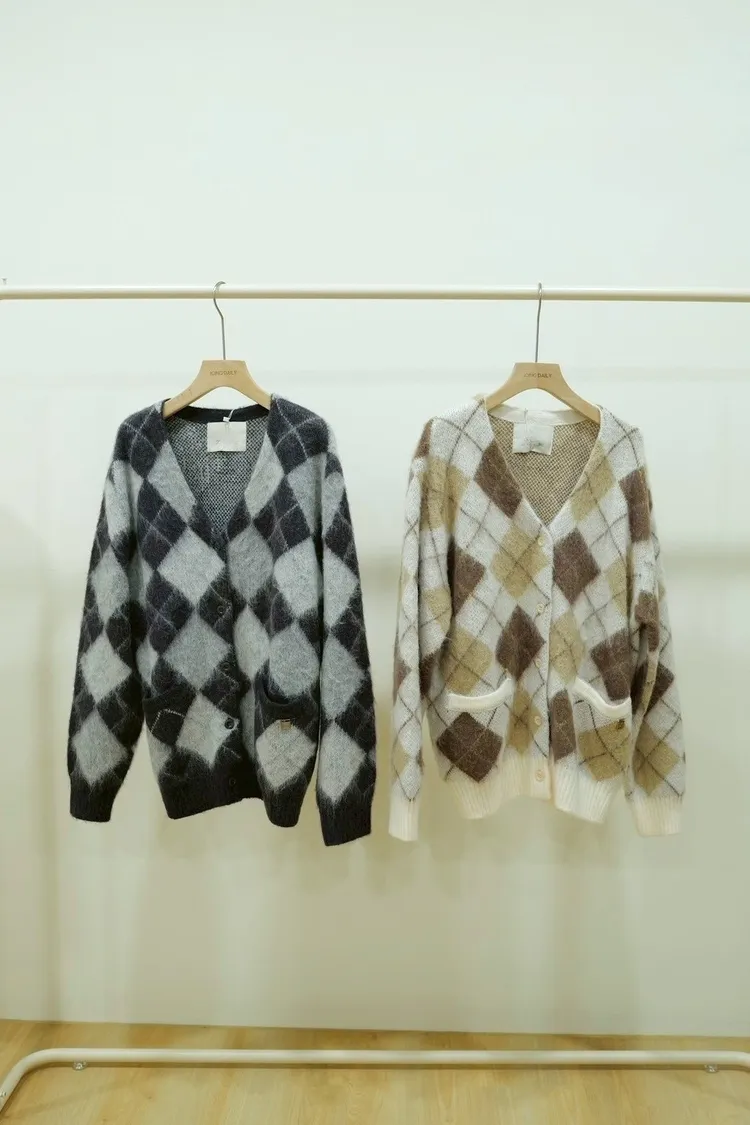 羊毛40%馬海毛18%格紋排釦毛衣(灰,咖)