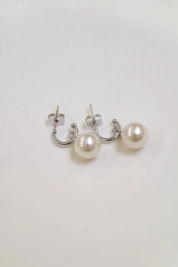 銀針垂珍珠耳環