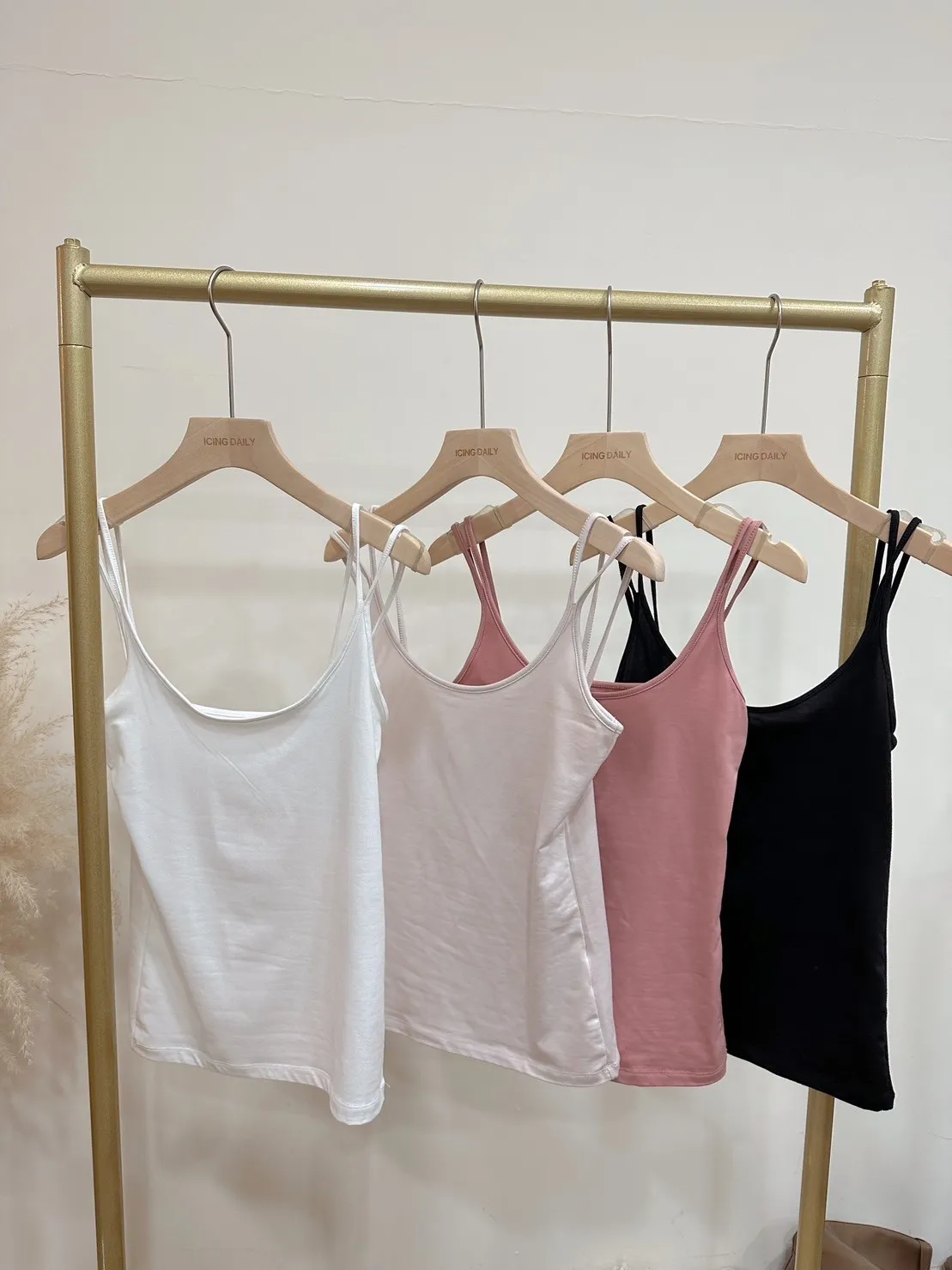 韓國製雙肩帶發熱背心(黑,米,白,粉)