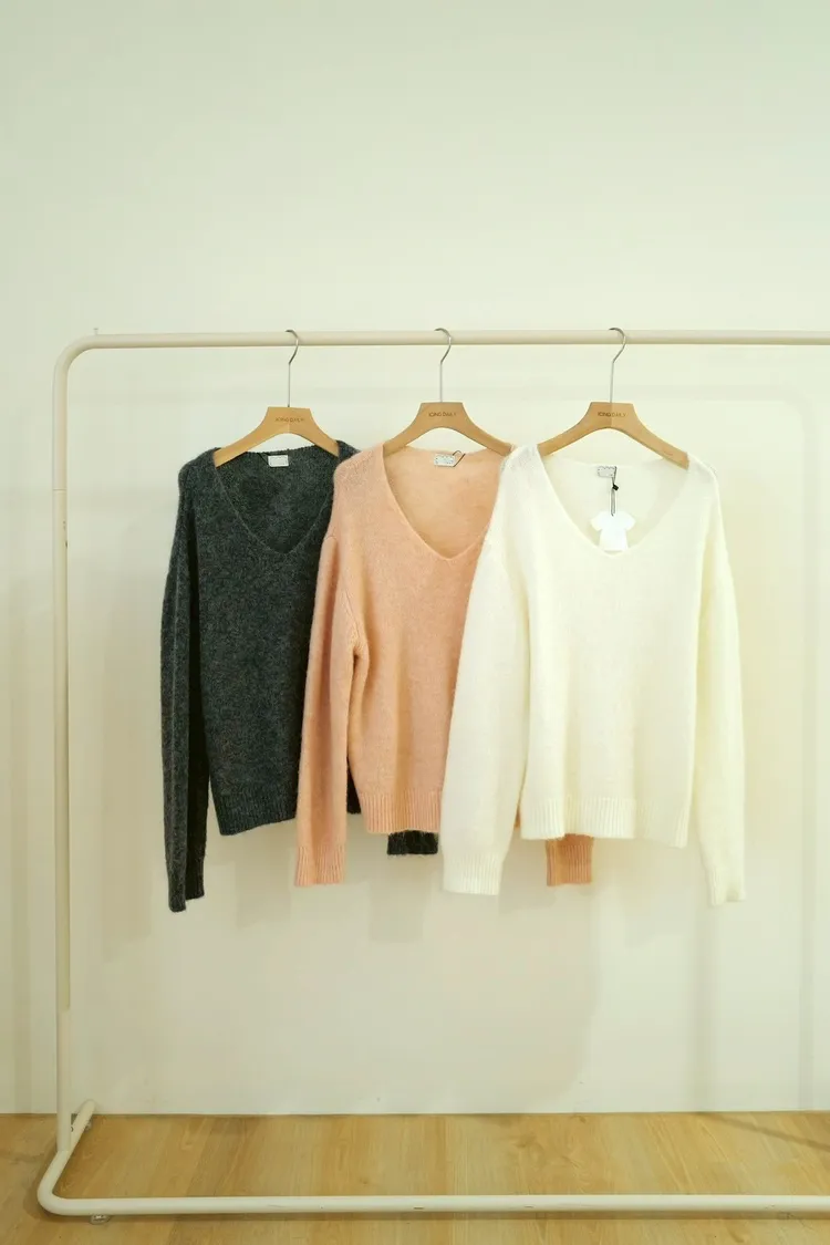 特價限量款馬海毛15%羊毛35%甜美V領上衣(白,粉,灰)