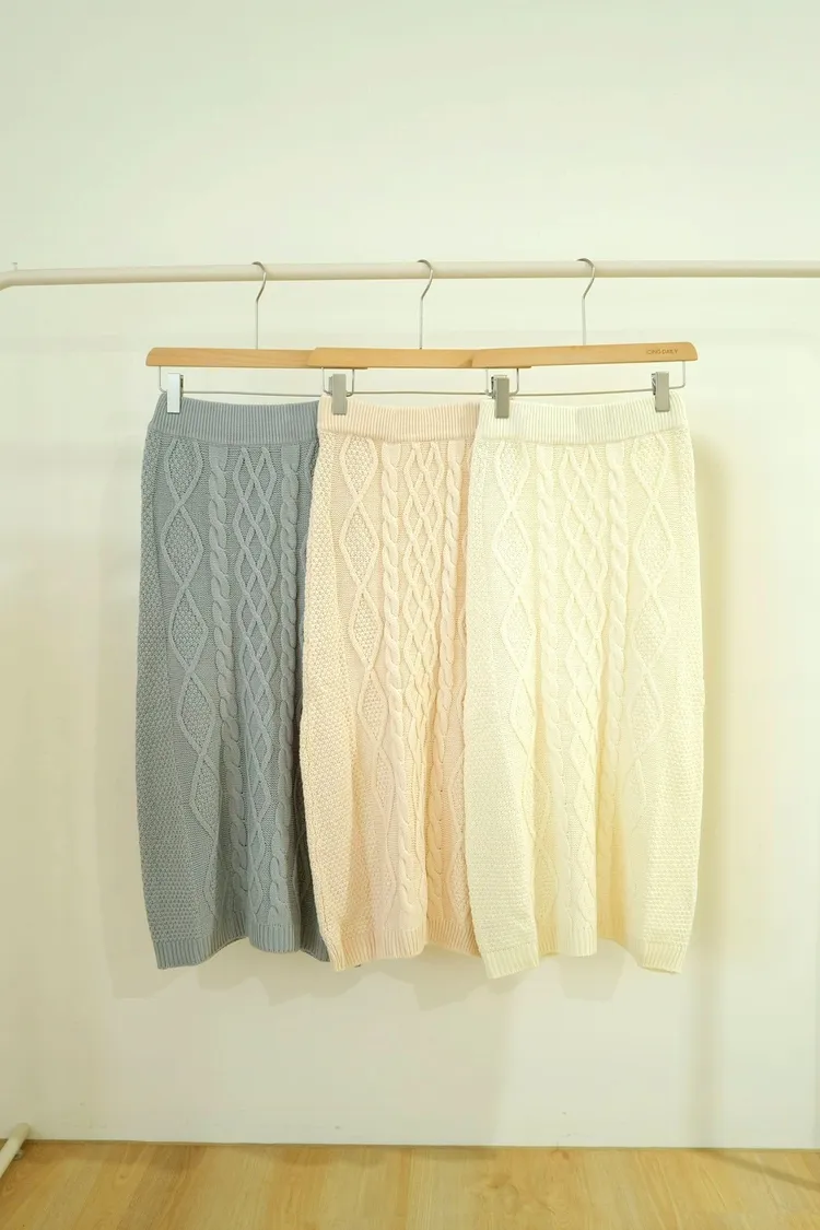 麻花紋路針織裙(白,米,灰)
