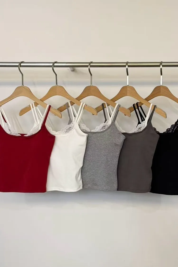 假兩件蕾絲細肩Bra(黑,白,灰)