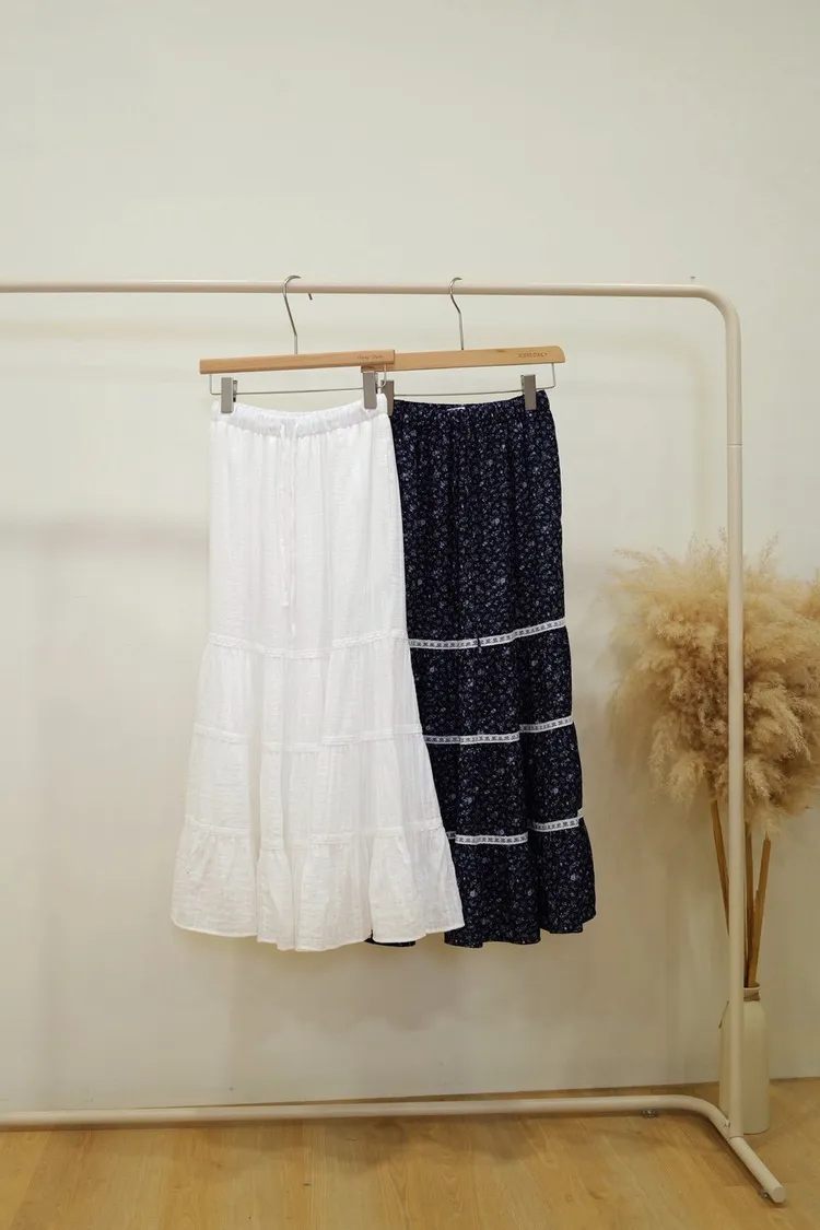 超美鬆緊蛋糕裙(白,藍)