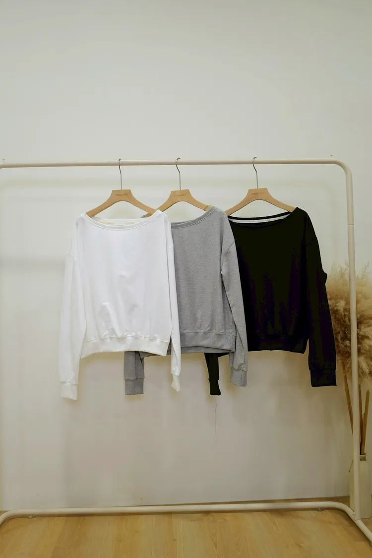 休閒落肩一字領上衣(白,灰,黑)