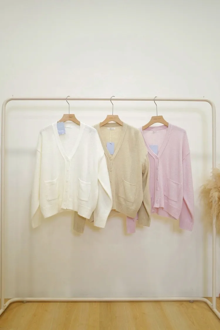 馬海毛5%羊毛5%慵懶口袋V領外套(粉,白,杏)