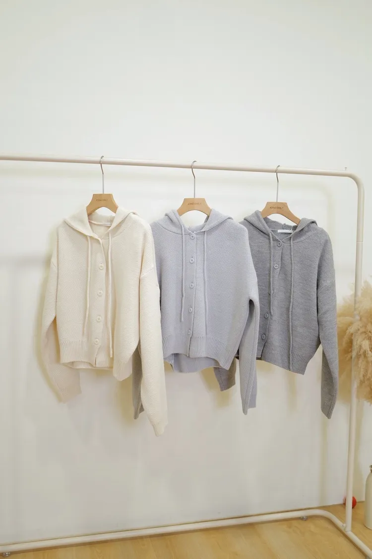 羊駝毛10%連帽針織排扣上衣(米,灰,藍)
