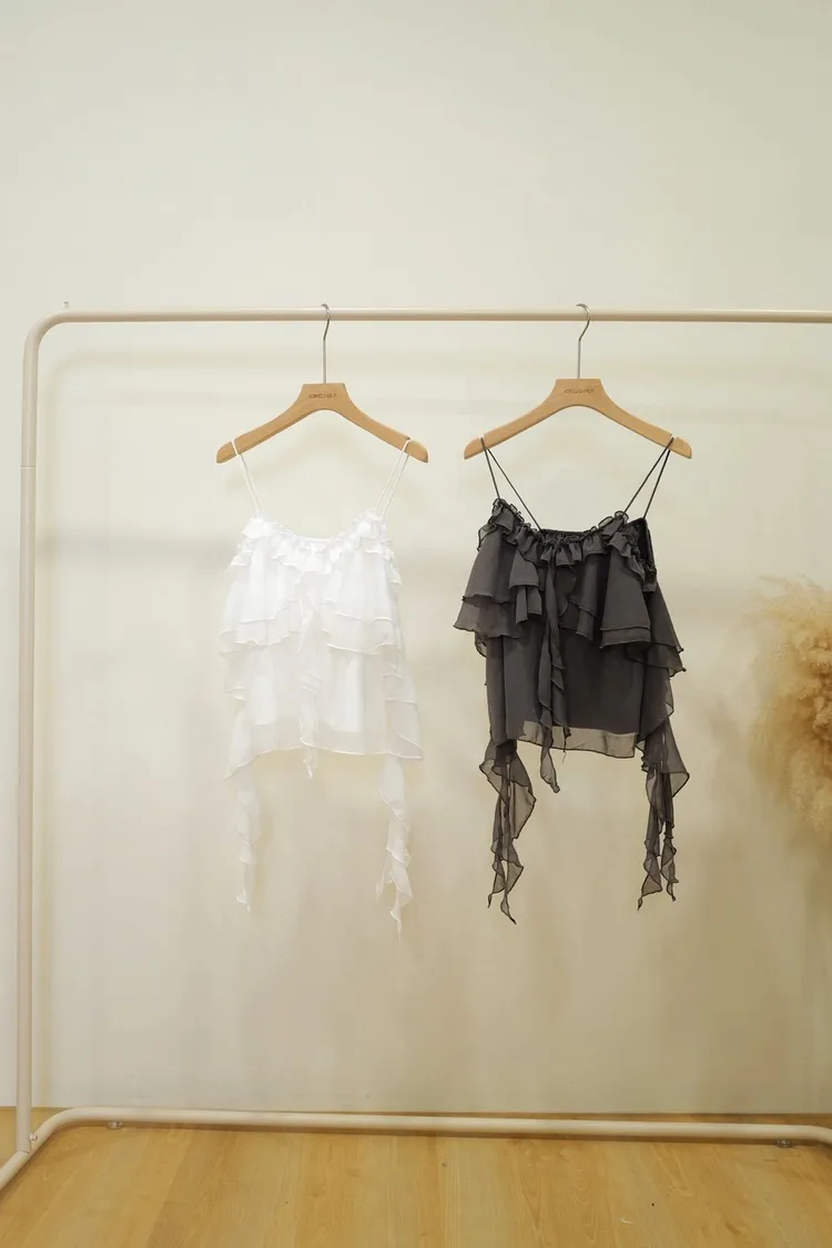 細肩造型荷葉背心(白,灰)