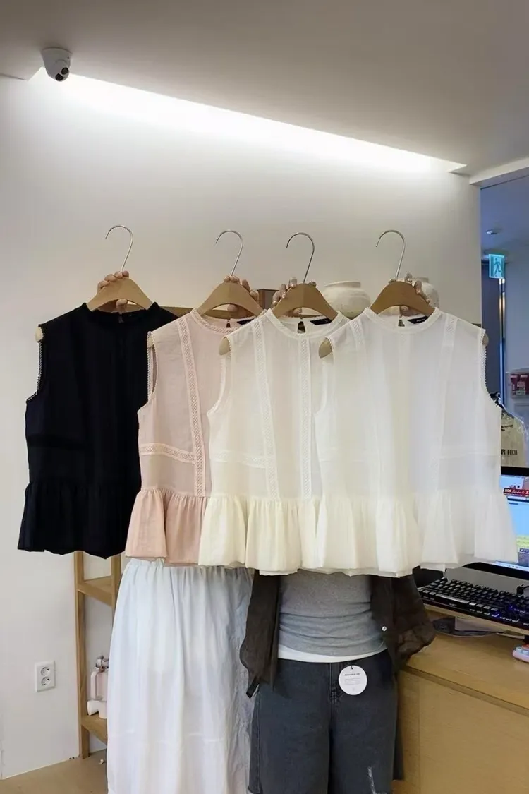 透膚刺繡寬肩背心(白,米,粉,黑)