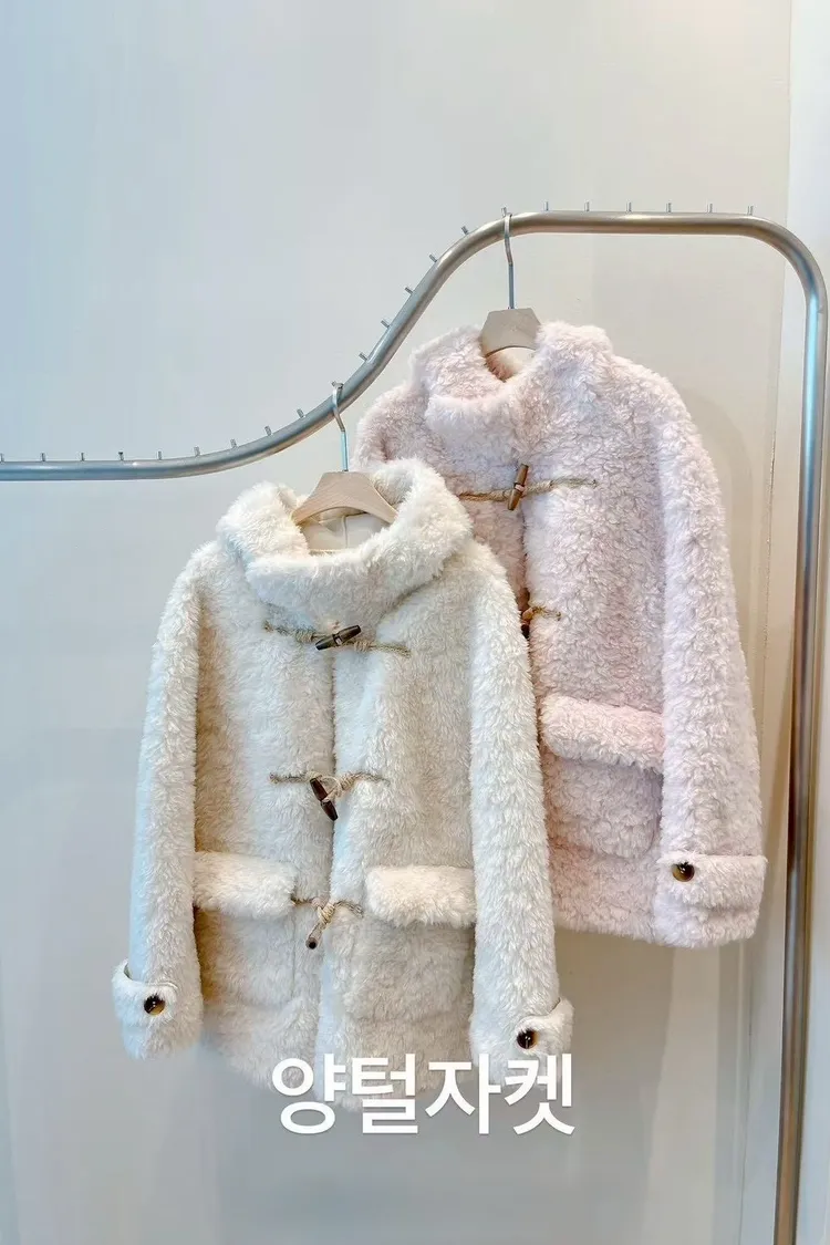 羊毛20%減齡毛毛木釦上衣(白,粉)