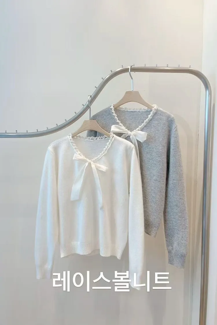 羊毛20%氣質蝴蝶結V領上衣(白,灰)
