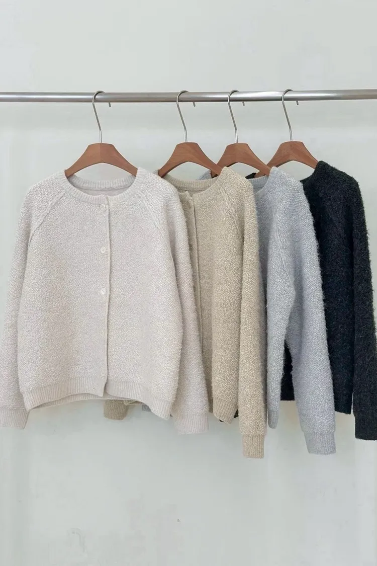 羊毛60%無肩線排釦毛毛上衣(杏,灰,黑)