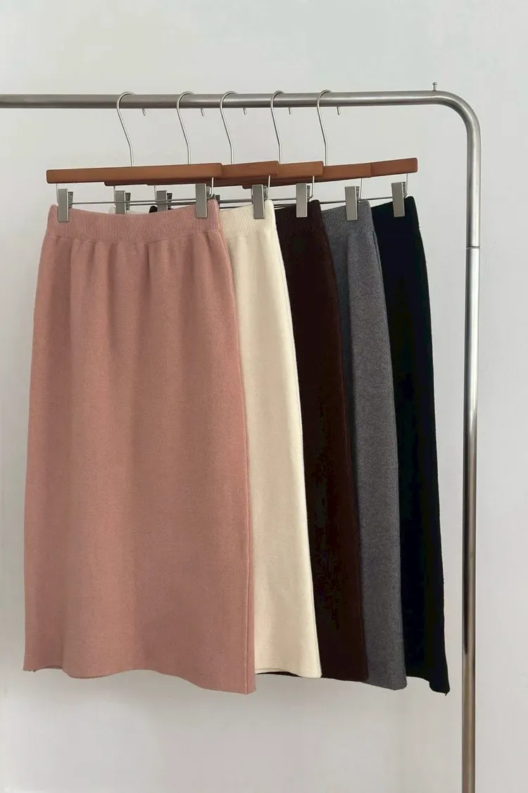 羊毛80%針織鬆緊A字裙(粉,白,咖,灰,黑)