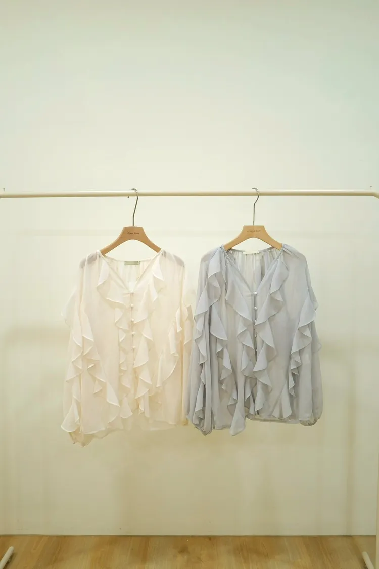 波浪堆疊感層次上衣(米,灰)