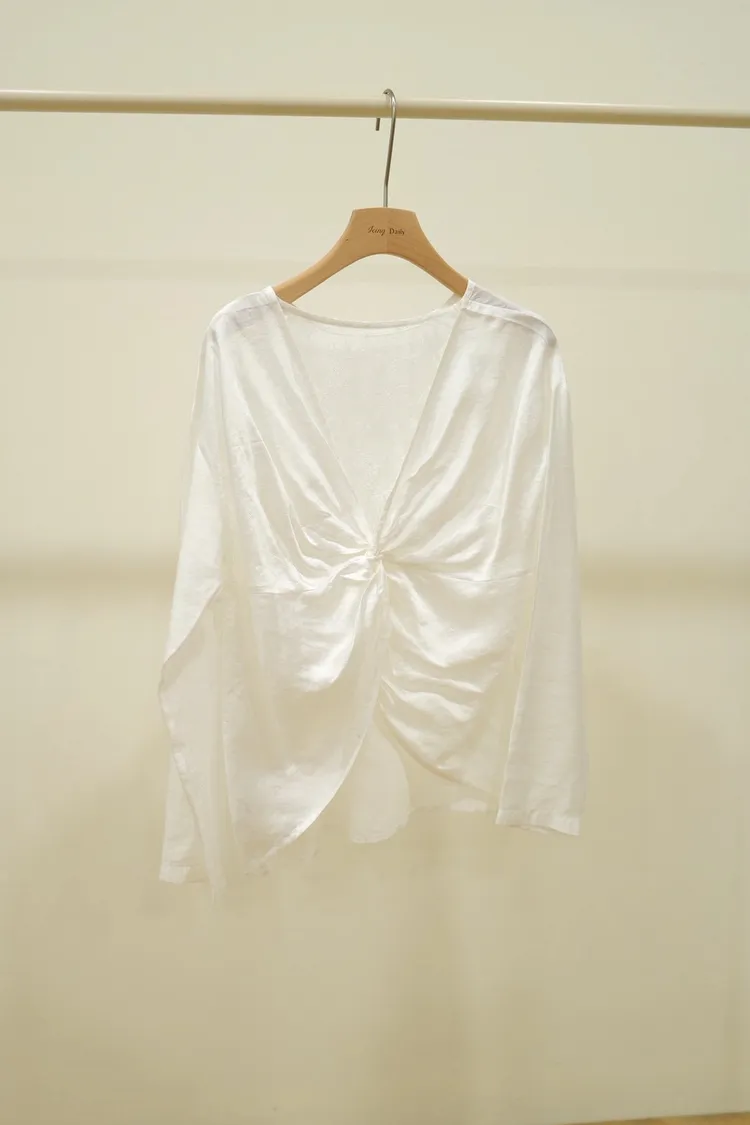 扭結蕾絲V領上衣(白,黑)