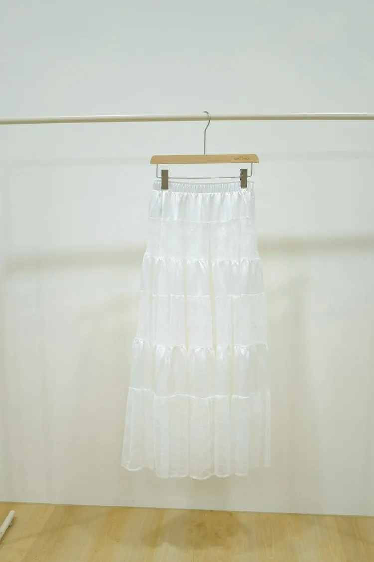 漂亮蕾絲蛋糕鬆緊裙(白,黑)