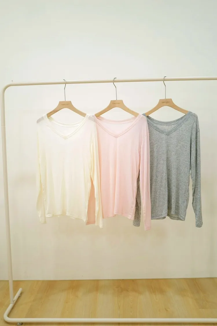 人造絲9.2%羊毛9.2%透感休閒長袖上衣(白,粉,杏,灰)